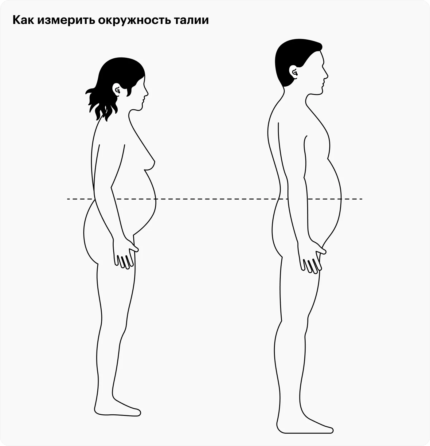 Иногда такое наблюдается даже при нормальном ИМТ, поэтому главный критерий здесь — обхват талии. Ключевым показателем абдоминального ожирения является окружность талии, которая не должна превышать 94 см у мужчин и 80 см у женщин.