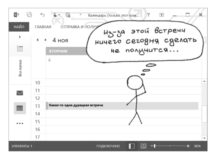 Может ли одна небольшая встреча испортить вам весь день целиком? Скажем, если ее назначат в такое время дня, что ни до этой встречи, ни после нее ничего толкового сделать не получится. Сама по себе встреча коротка, но она утягивает за собой в пучину бездарно потраченного времени весь день. Знакомо?
