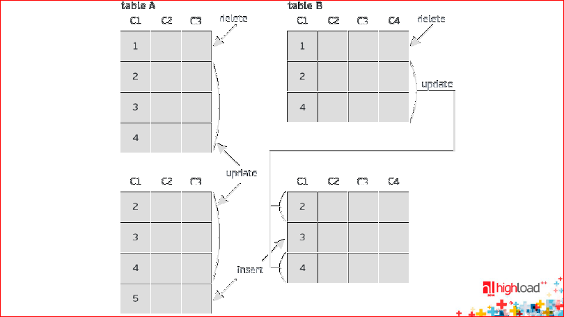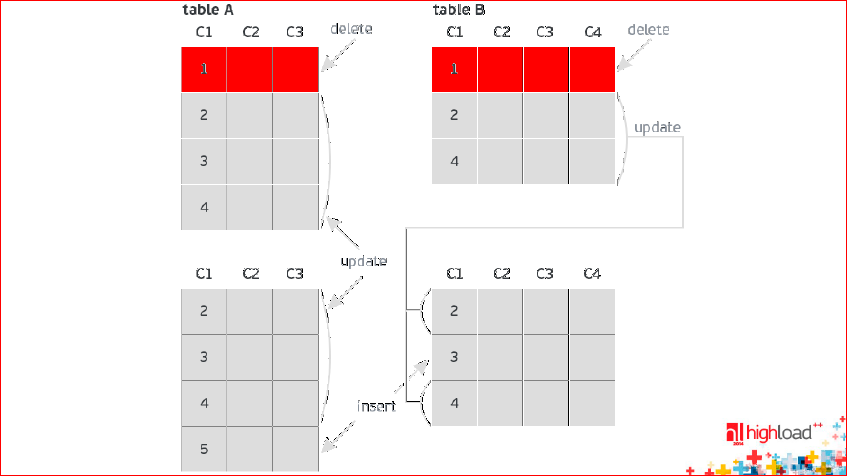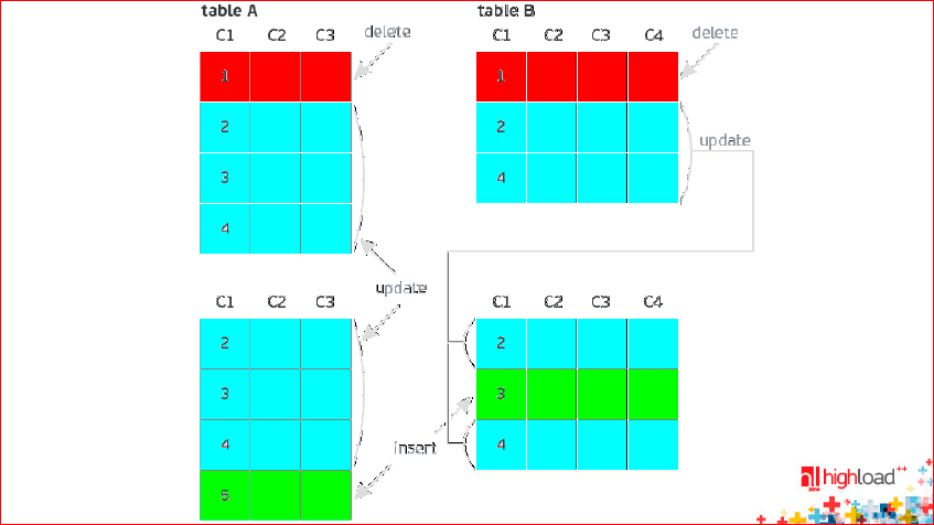 Синие UPDATE’ы есть и в BEFORE image, и в AFTER image. Это обновления.