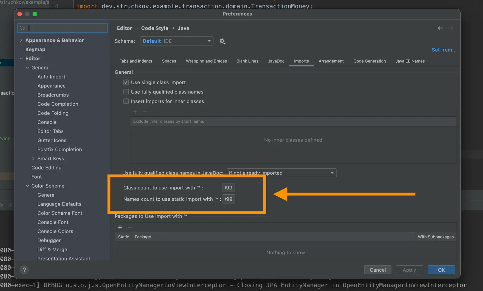 Чтобы отключить автоматическое сворачивание импортов достаточно указать число 999. Вот и все, теперь Idea не будет автоматически сворачивать импорты.