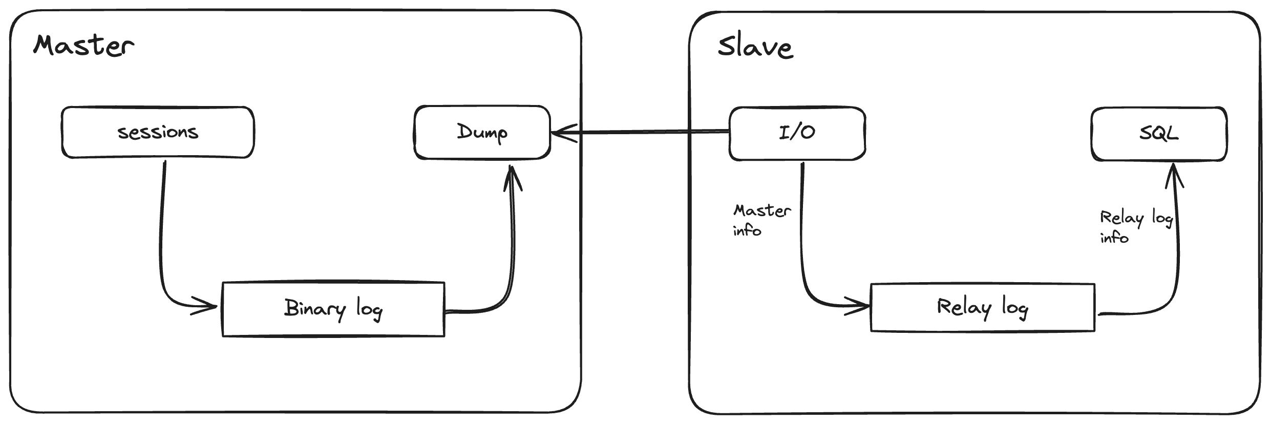 • binlog dump thread. Сохраняет лог транзакций на master