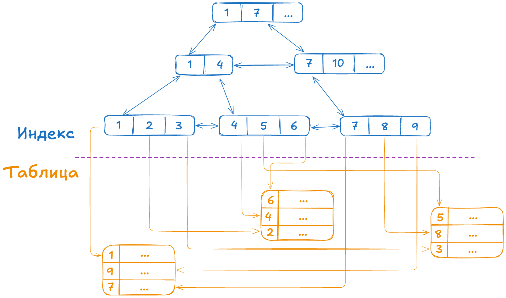 Структура B-tree индекса.excalidraw